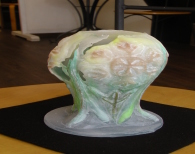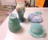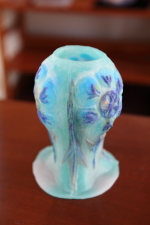 パートドヴェールについて ガラス工芸の一つです。 カットガラスや吹きガラスのような、よく知られた技法ではありませんが、 歴史は、紀元前16世紀にさかのぼります。 石膏の型に粉状のガラスを詰めて、850℃で溶かします。 複雑な形や色の表現が可能です。また、独特な蝋のようなやわらかい質感が特徴です。 独学で始めました。 やっと、いい色が出せるようになりました。 |
